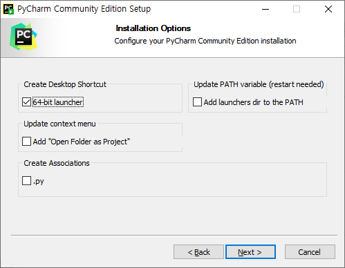 저는 중간에 64-bit launcher 만 선택하고 설치를 진행했습니다.