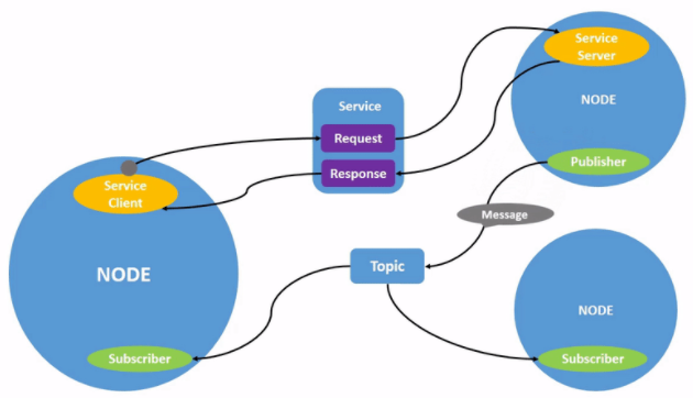 각 Node를 기반으로 Node 간 통신을 하는 것이 기본 컨셉이며, 이 Node 사이에는 message가 오가게 됩니다. 이 특정 message를 수/발신하기 위해 Publish/Subscribe 모델을 사용합니다.